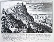- ↑ localisée à 556 m d'altitude, à flanc de montagne, soit 150 m au dessus du centre-ville