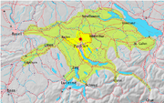 - au nord-ouest le long de la vallée de la Limmat en direction de Baden-Brugg,