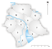 Les quartiers administratifs actuels Rathaus et Hochschulen sont localisés sur la rive droite et ceux de Lindenhof et de City sur la rive gauche.