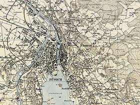 La commune historique, dont le territoire avant 1893 correspondait alors au Kreis 1 actuel, avait une surface de 1, 69 km². Au 19e siècle le développement urbain subit un fort accroissement. La ville opère alors deux agrandissements successifs en 1893 et 1934 avec la fusion de 19 communes limitrophes pour former la commune de Zurich actuelle qui a une surface cinquante fois plus grande.