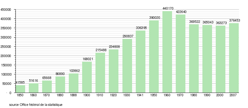 - ↑ (de) (fr) (it) Évolution de la population des communes 1850-2000 Recensement fédéral de la population 2000.